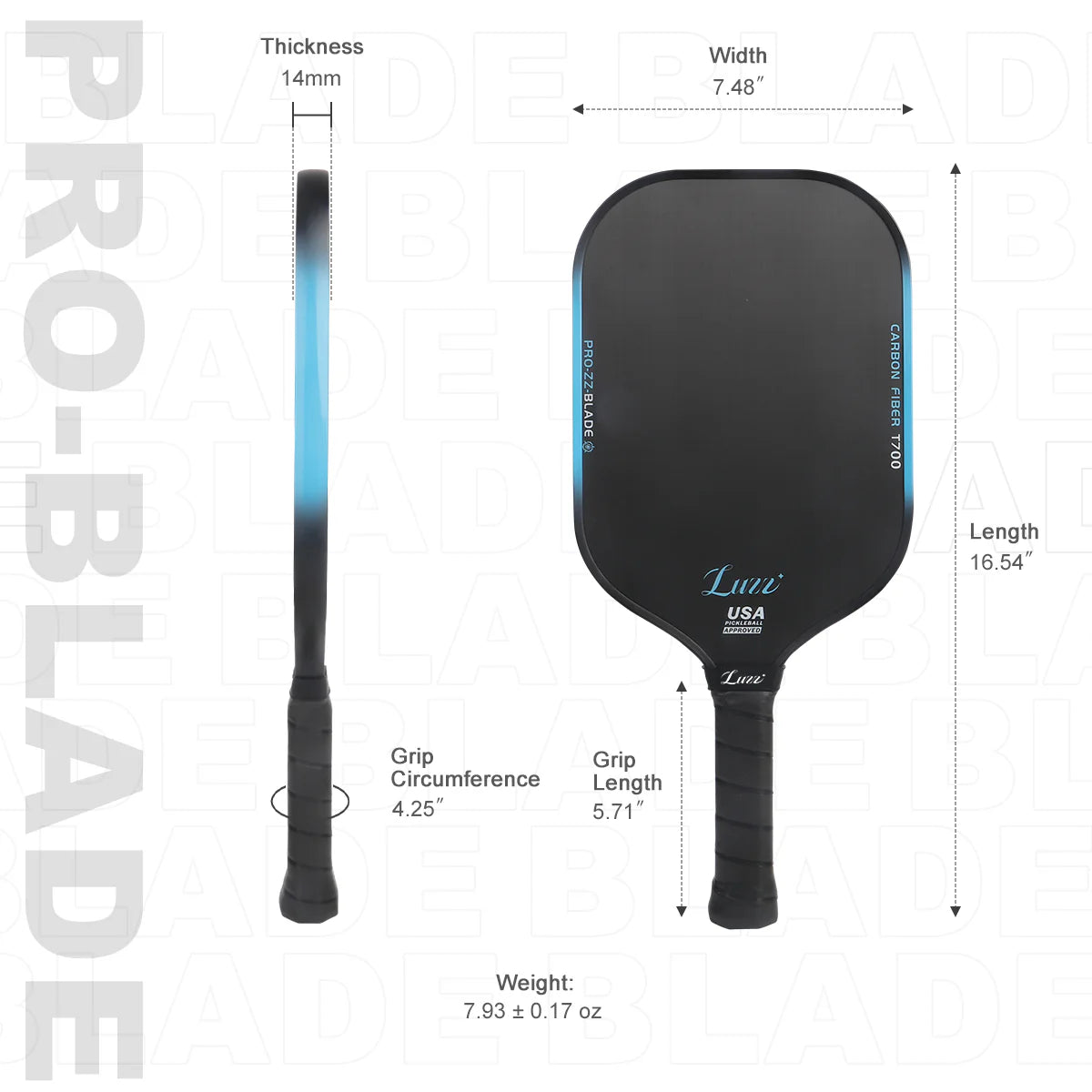 Luzzpickleball Blade Paddle(14mm) T700 Carbon Friction Surface|Thermoformed